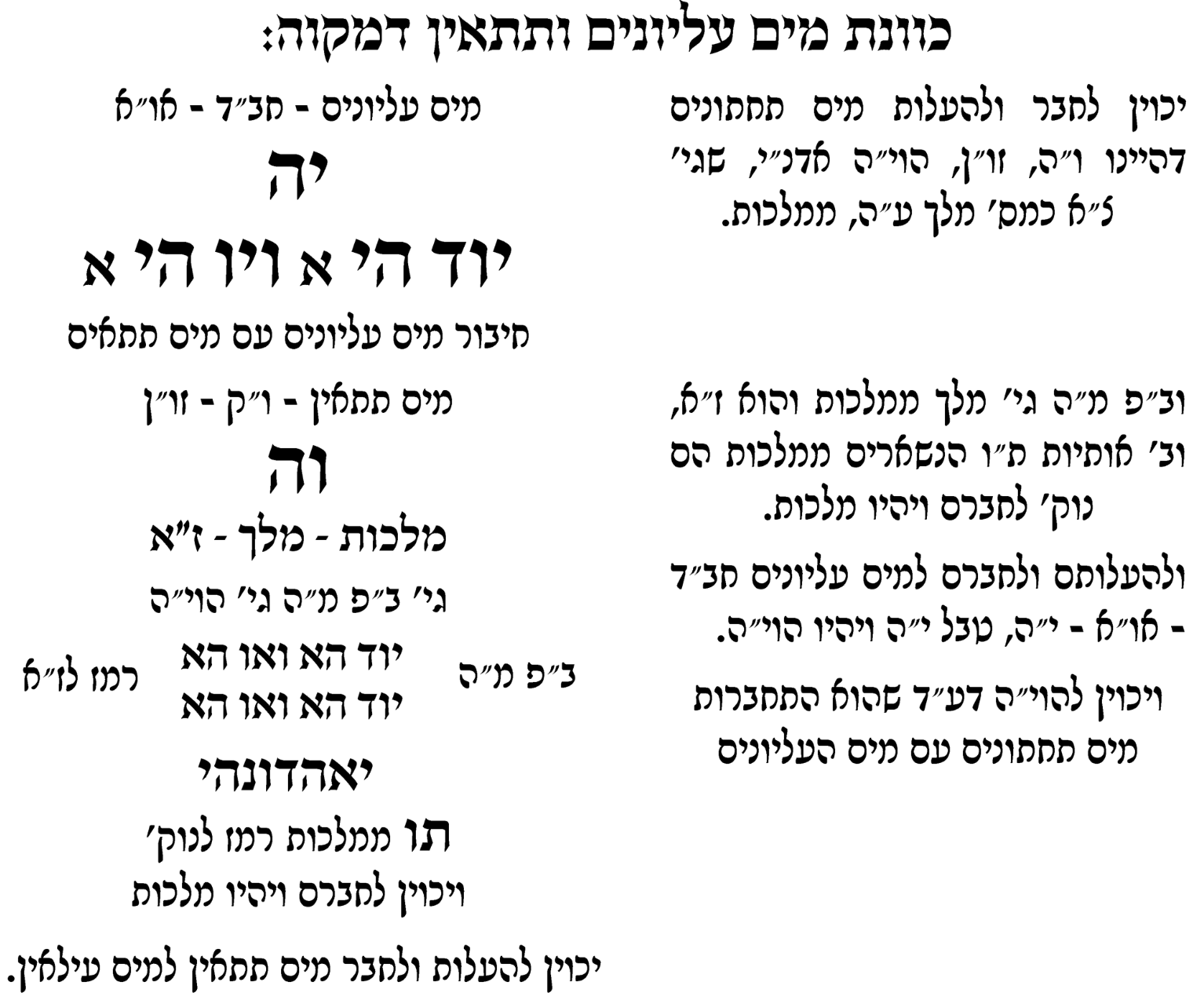 - On the second dip, be mekaven lower the first letter of יהוה down to illuminate the first letter of אדני.