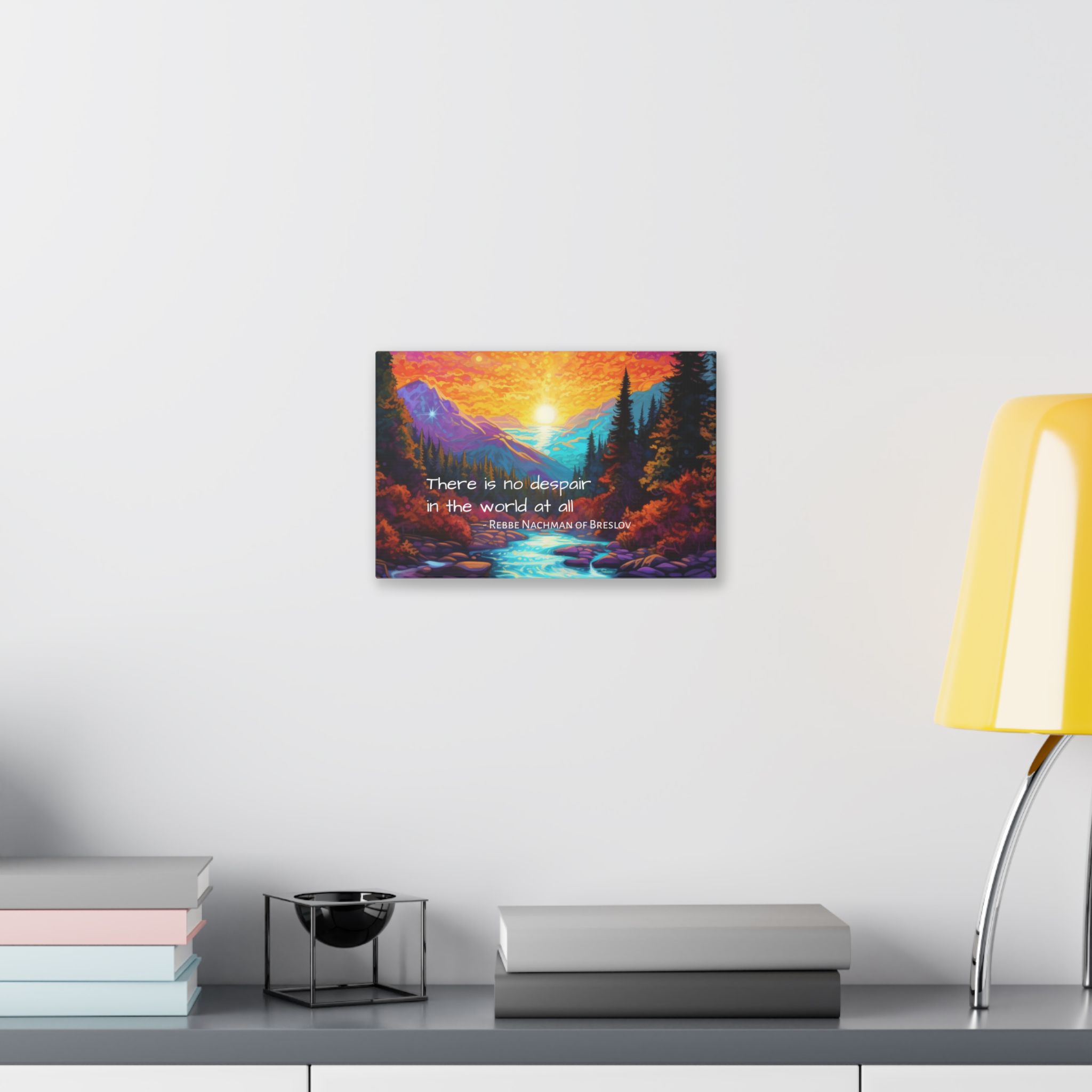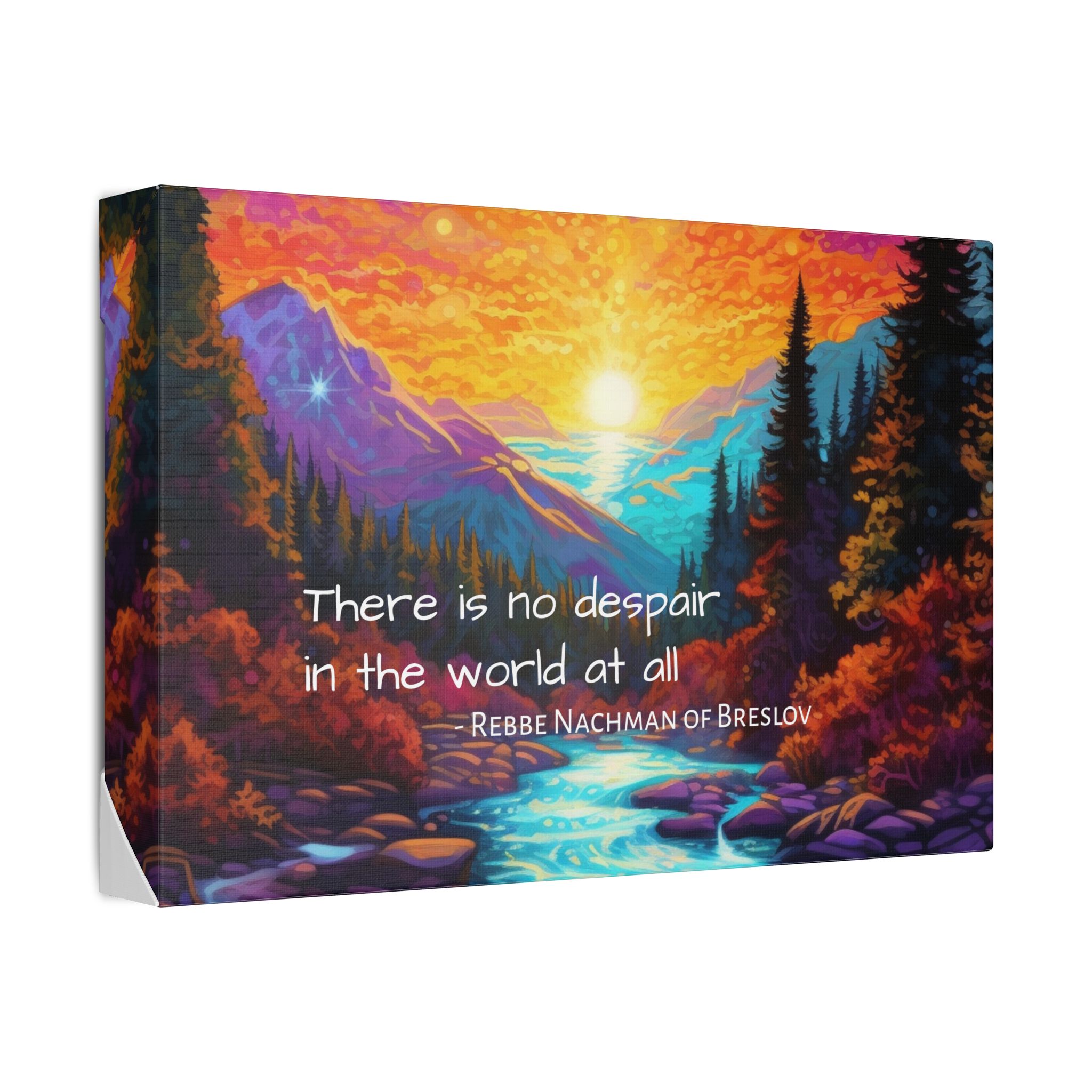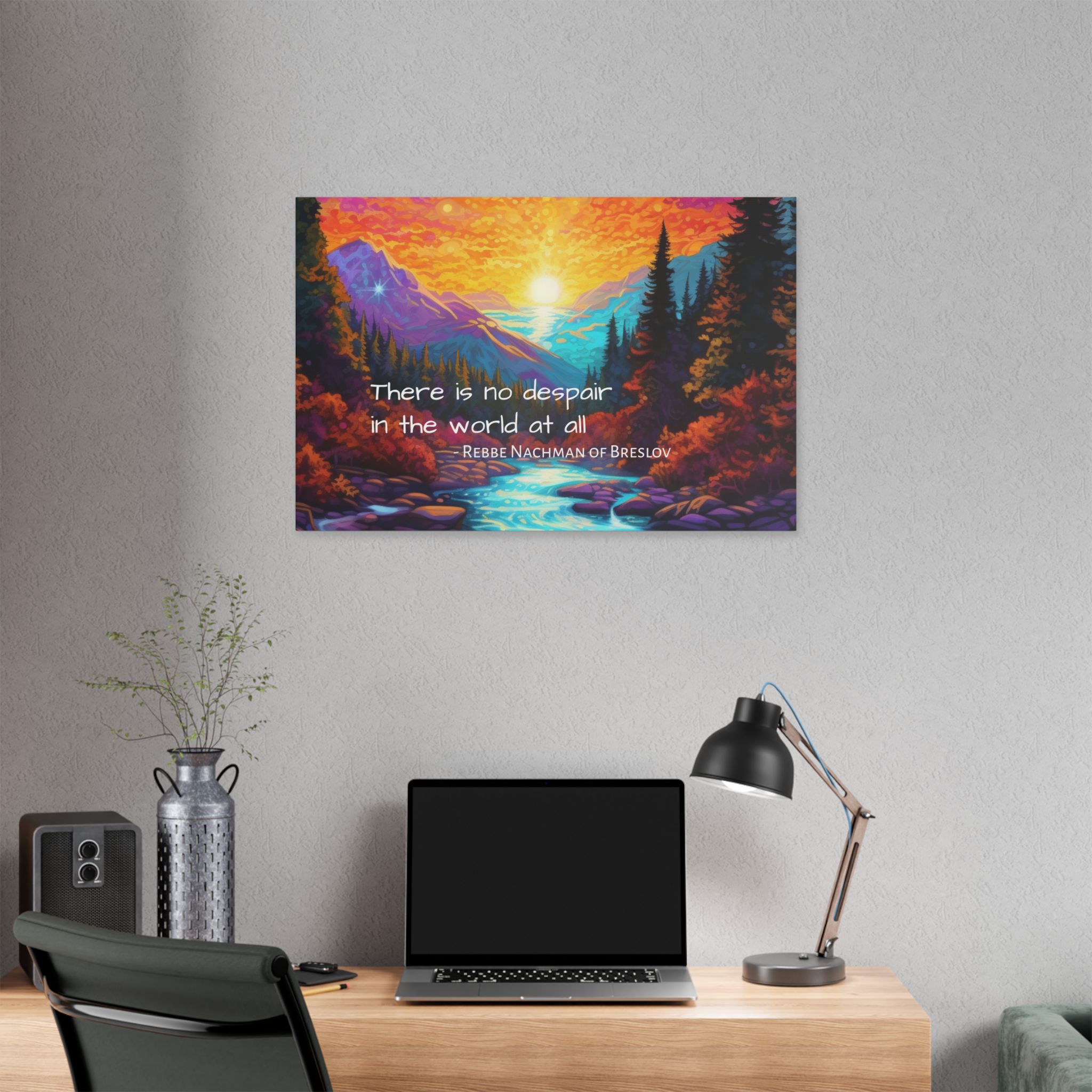 This stretched canvas features the timeless teaching of Rebbe Nachman of Breslov: “There is no despair in the world at all” (Likutey Moharan, I:1). More than a quote, it is a guiding principle for navigating life’s challenges, a reminder that even in difficulty, clarity and spiritual perspective are possible.